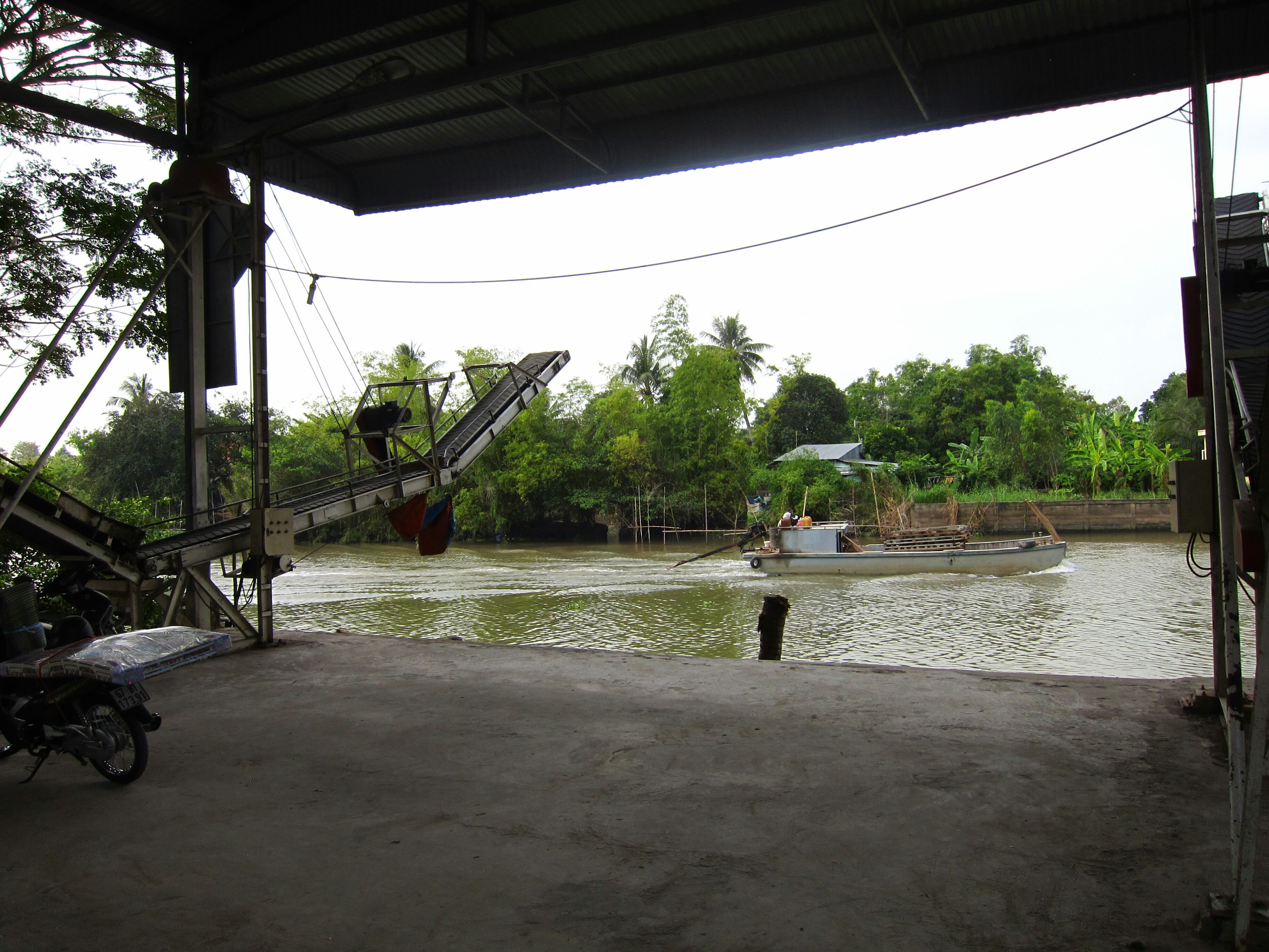 Suddenly, everything was quiet and peaceful. We were riding with a canal on one side and homes or storefronts on the other side. There was very little traffic and lots of trees offering shade. We passed by rice fields and flower growers and biked through fish processing plants. Everyone was smiling, waving and shouting hello.