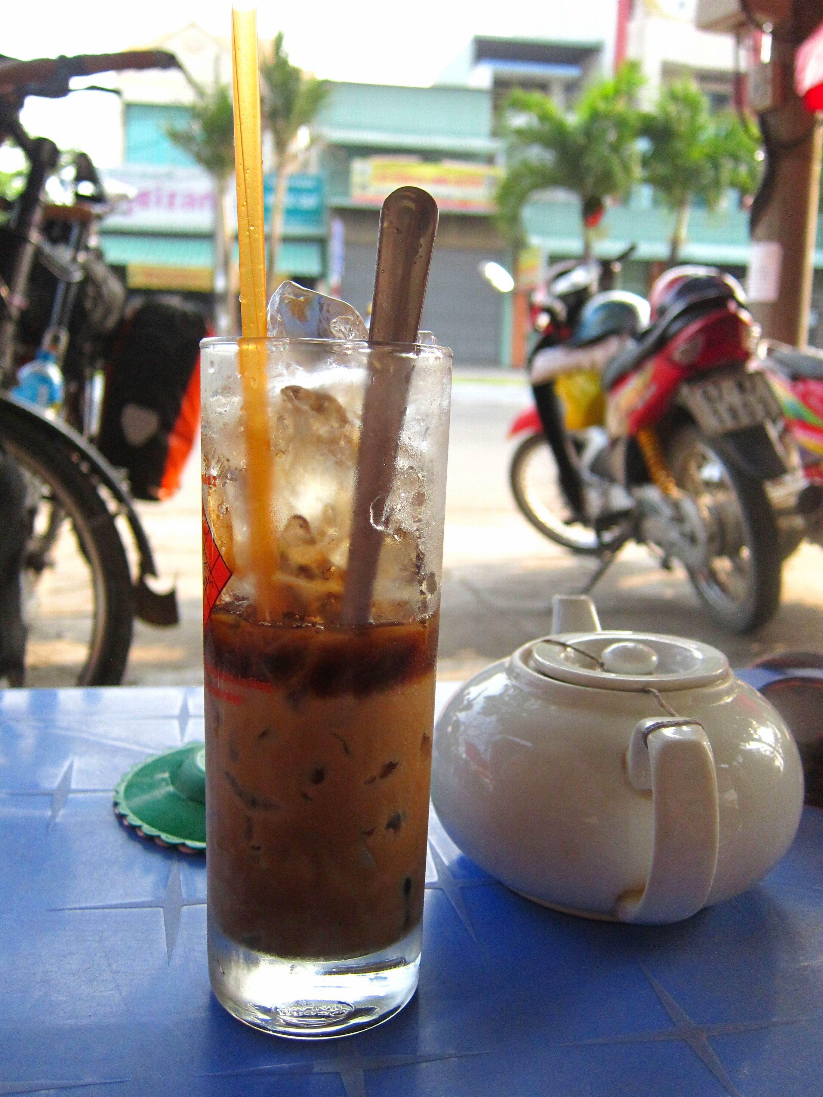 We spent the rest of the afternoon as the locals do, sitting down in a cafe watching the traffic while sipping iced coffee. The coffee is very strong, which forces you to drink it slowly, as the ice melts the flavor changes. A pot of green tea is also generally provided to enjoy with the remaining ice in your glass. We hung out for a hour before setting out in search of food.
