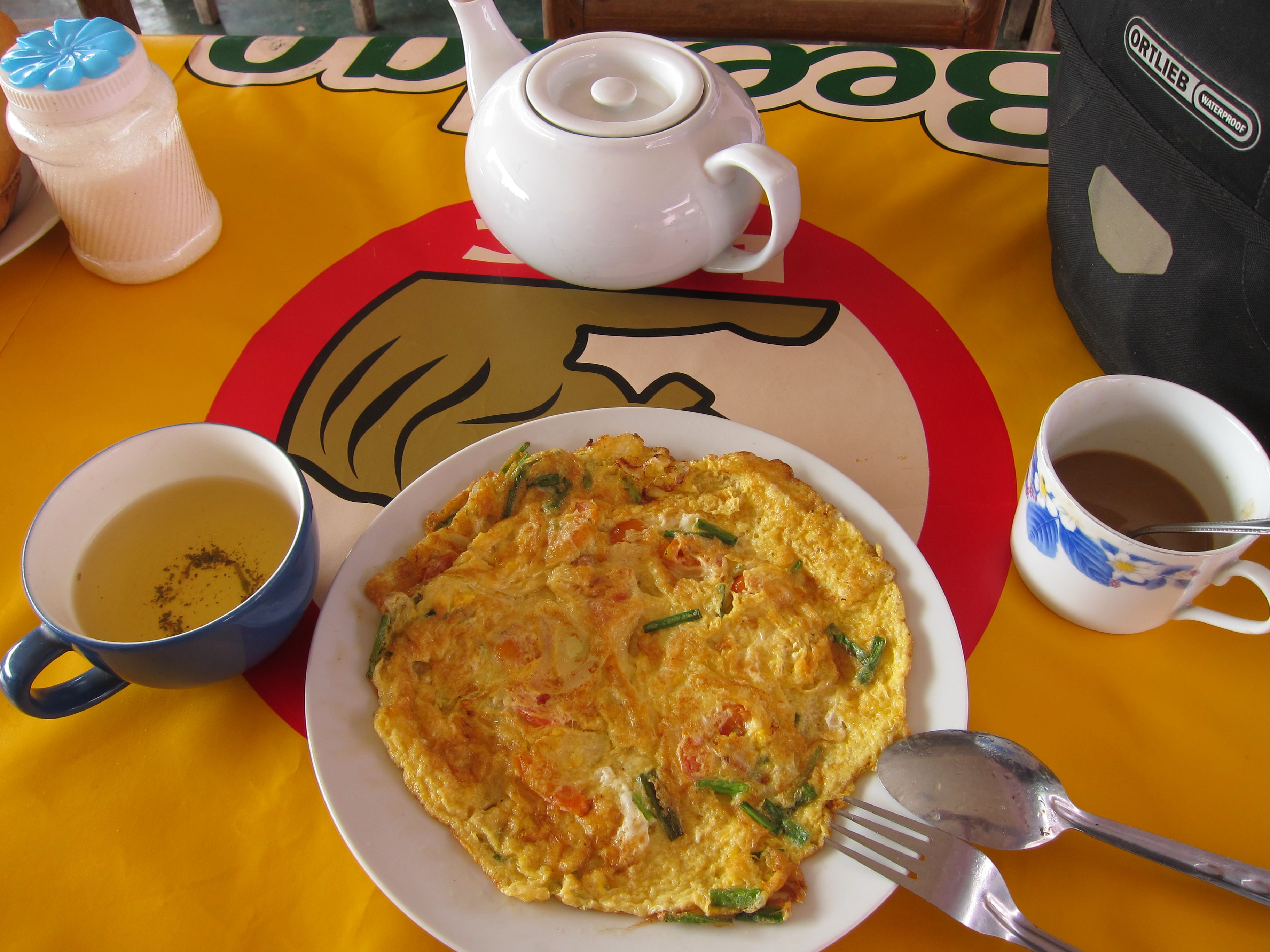 The highlight of the afternoon was when we hit 1000 meters of climbing on the day, which was the most we’ve done so far. Chan’s mom had sponsored a bag of Cheetos we found way back in Vientiane, to be eaten only once we hit this milestone. They were much enjoyed, although we must have looked a bit suspicious with our hands covered in neon orange “cheese” when a couple of French cyclists rode up for a chat after our victory snack…