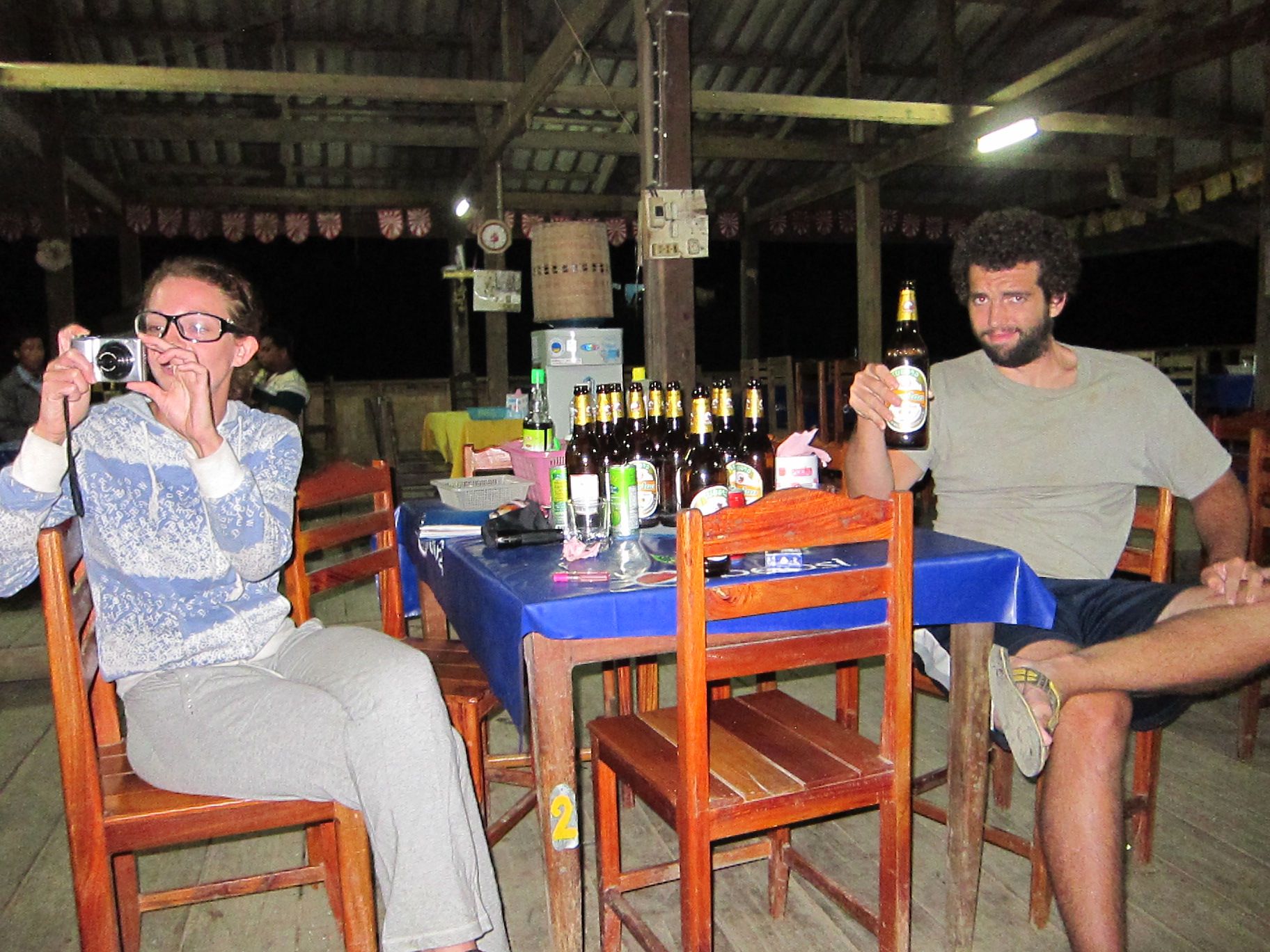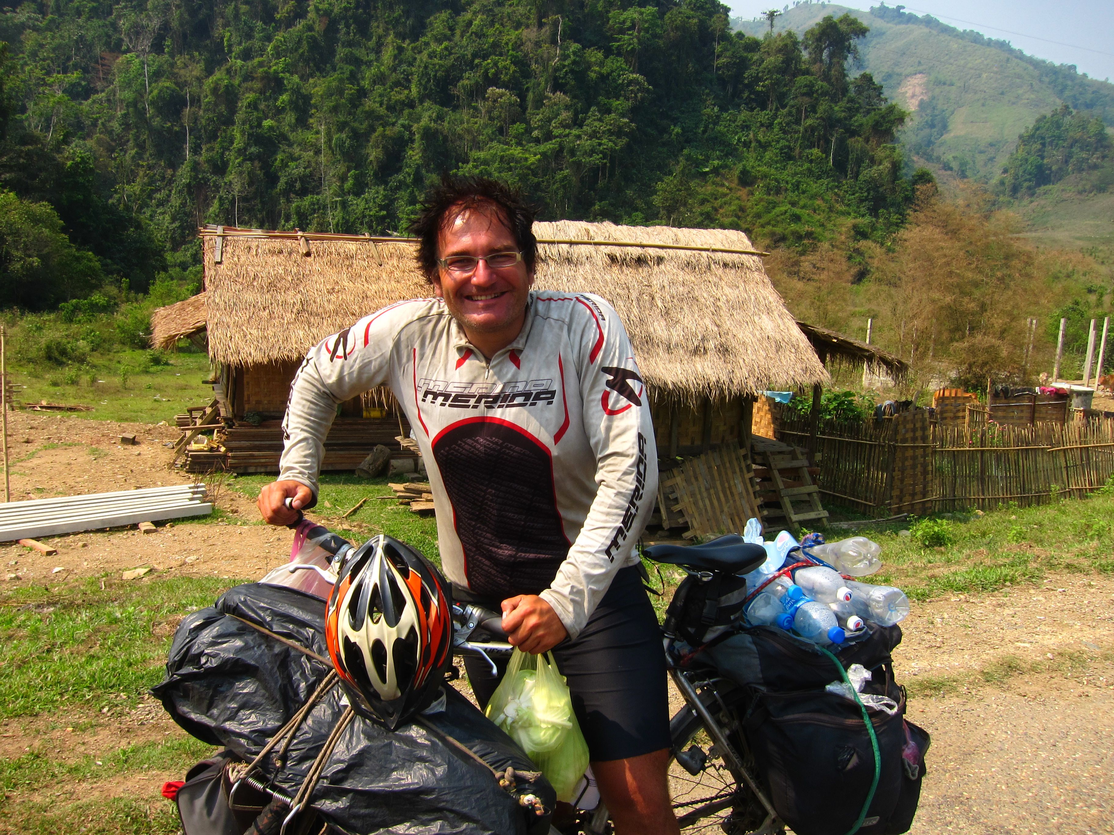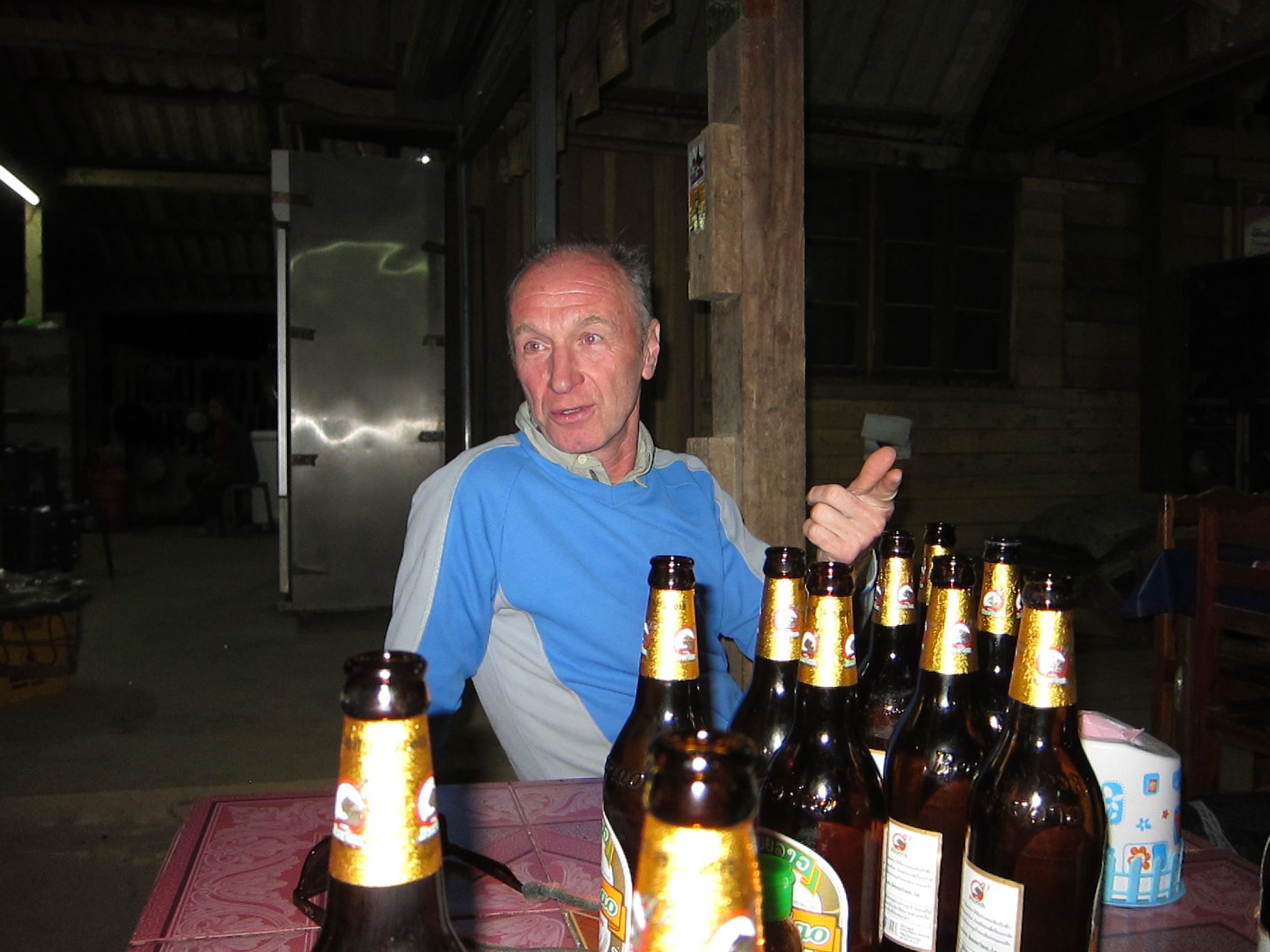 The structure he found are all over Laos. They are little huts with a thatched roof and a raised bamboo platform inside for woodcutters and other workers to rest in, off the ground, in the heat of the day. We pitched the inside of our tent without the rain fly on the platform which kept us away from the ants, snakes and who knows what else.