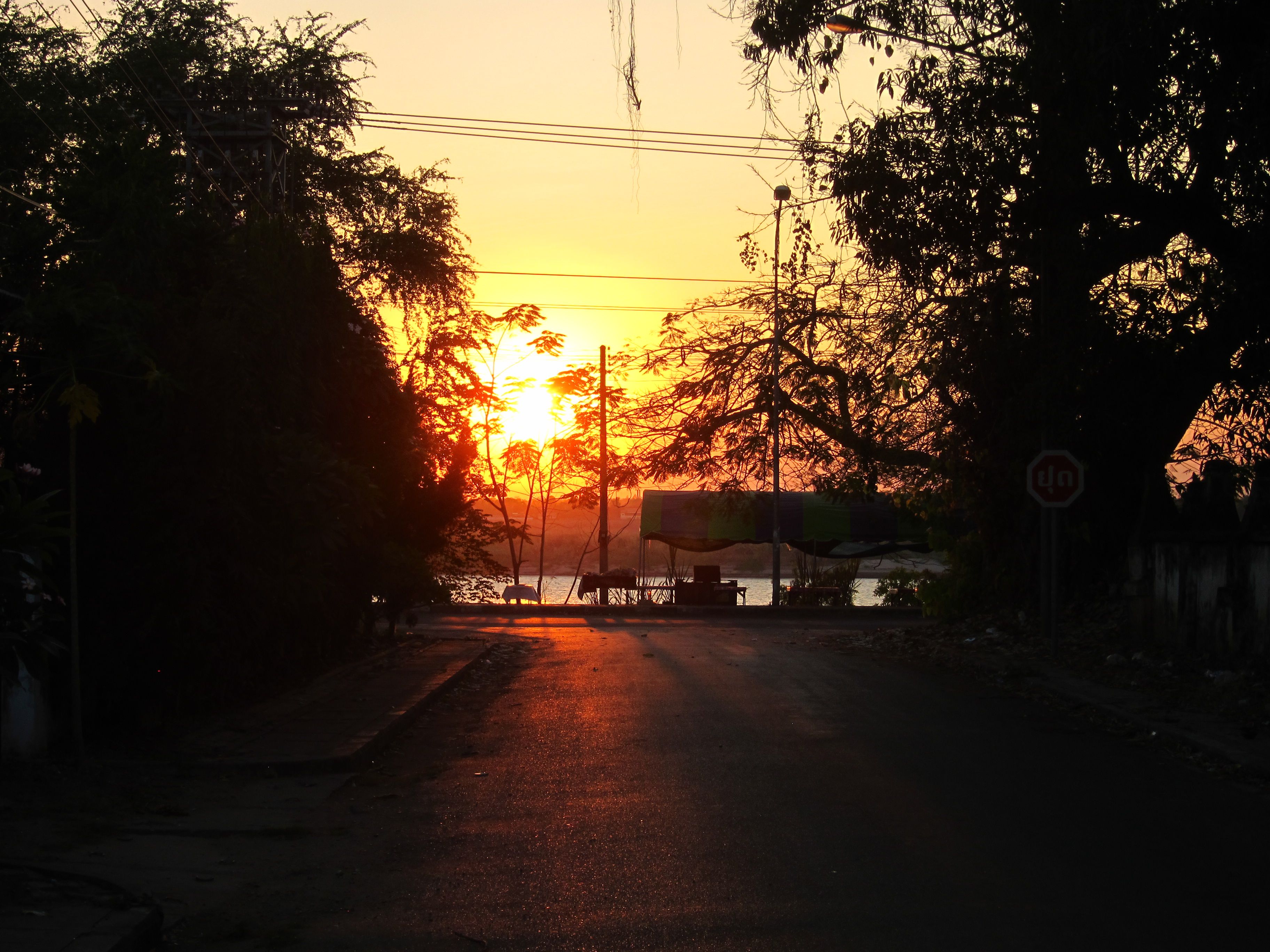 We set out for dinner pretty quickly after getting settled. The café we originally wanted to go to was closed, so we wandered around for awhile. We read that Savannakhet was quiet and not very touristy, but this was a bit of an understatement. The place was really quiet with parts of town feeling abandoned. Our Lonely Planet was outdated with most of the places listed to eat, not there anymore. We ended up at a French restaurant, which we later found out was the most expensive in town. It was worth it though. We got rolls with real butter and a big fresh salad. I had a bunch of small vegetarian morsels like stuffed tomatoes and a potato croquette, Chandler had tender beef served in a wine sauce. The meals were awesome, total bill $19. Budget blown, but feeling great we ended the evening with a walk along the Mekong River as the sun set.