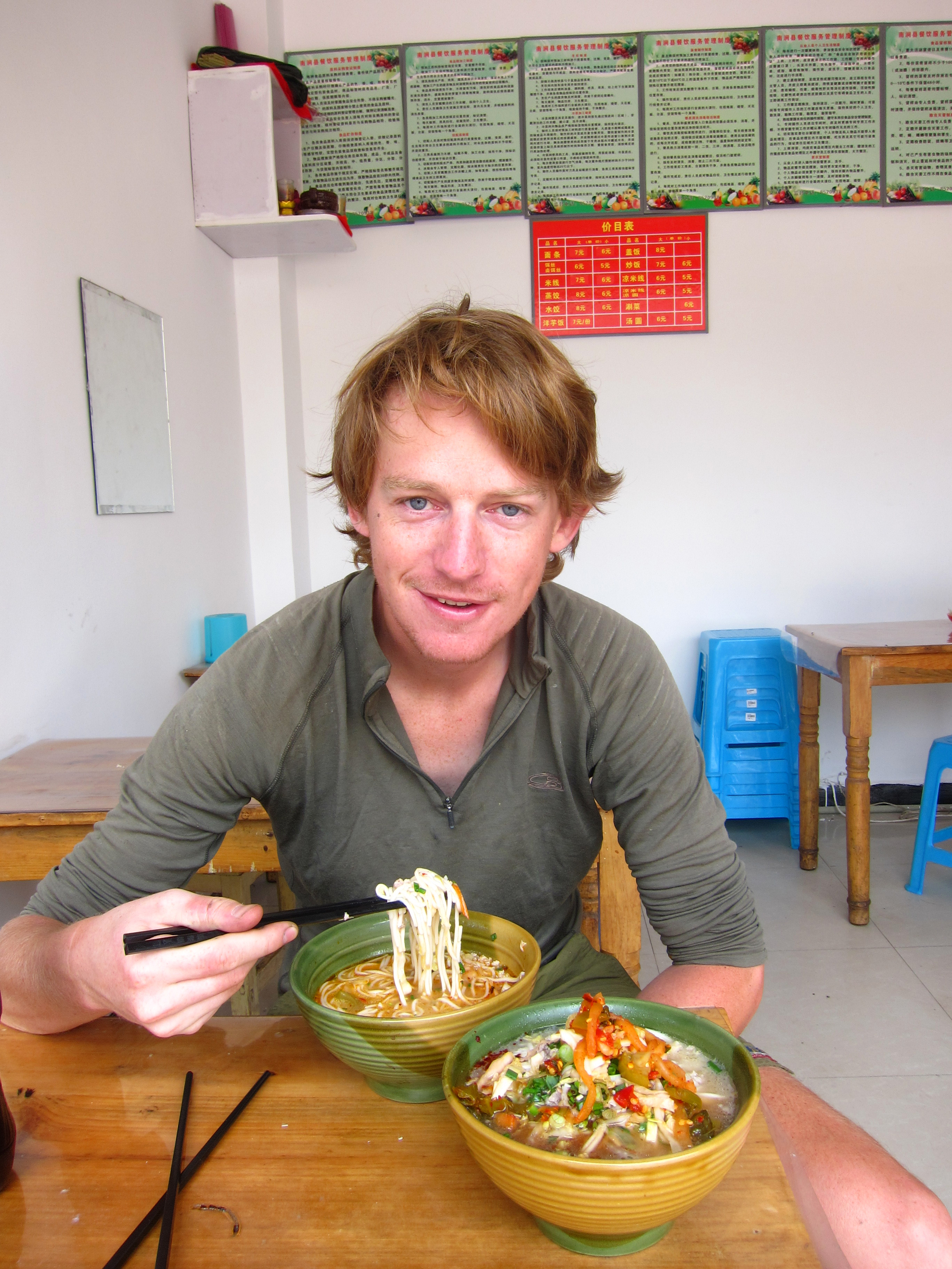 We then pedaled through a valley where the traffic and wind picked up and our moods started going downhill. The lack of consistent meals has made China a challenge for us to maintain positive attitudes. We stop for snacks, but that can only go so far before we find ourselves in the same predicament again.