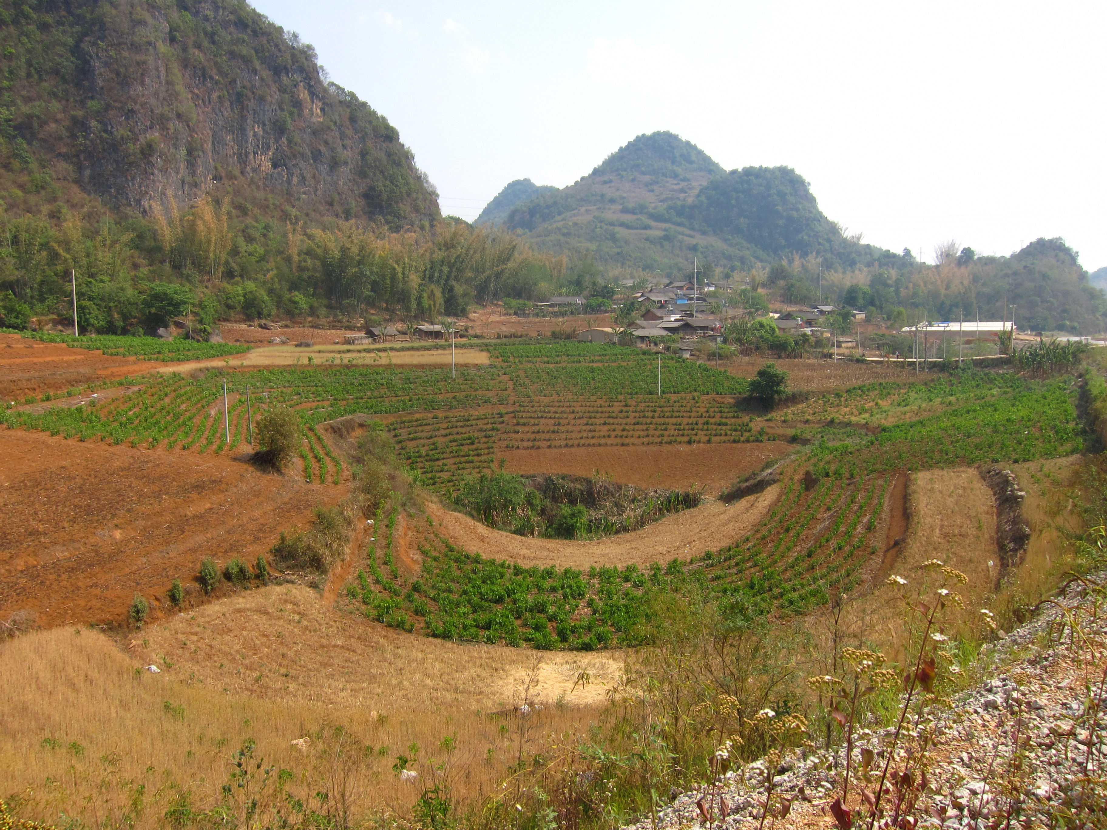 The geology in this region included lots of steep stone outcroppings, and we saw some really weird depressions that were planted with buckwheat and tea. Our guess was that they were old sinkholes or entrances to karst formations in the limestone of the area.