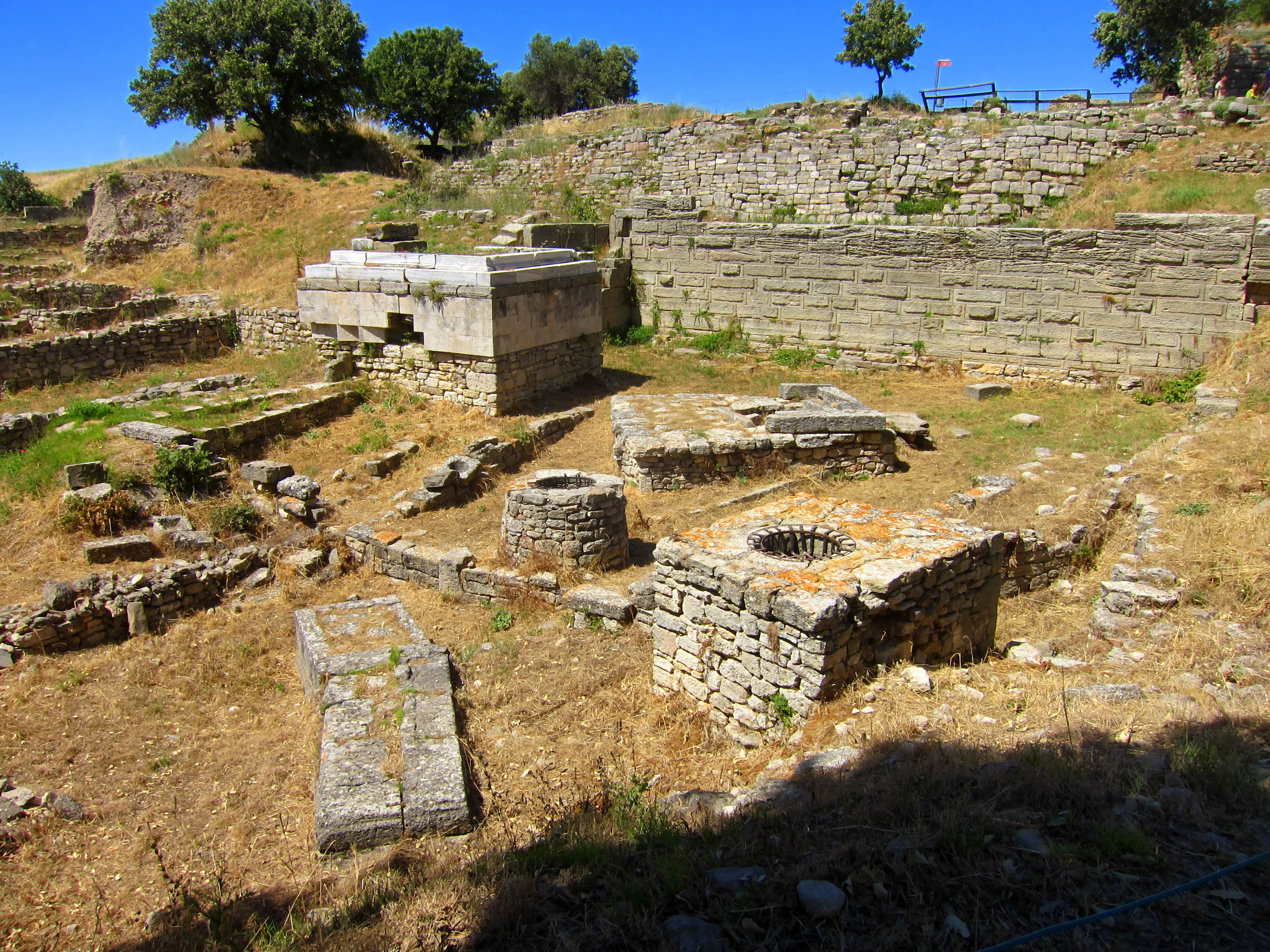 We paid 15 lira each for admission and parked our bikes by the guard station. It was pretty interesting, but nothing really stood out. The area had been extensively excavated over the years, initially by a treasure hunter type who apparently caused a lot of damage through his crude techniques. The main things to look at were random unearthed walls, wells and an amphitheatre. The ruins were not in the best condition, so it took some imagination to visualize what everything had looked like. What made things even more confusing was the city was inhabited over thousands of years, so there were actually several versions of Troy numbered Troy I through Troy IX or something, all on the same site. It was really difficult to keep straight what we were looking at and when it was from. One of the more interesting pieces of trivia we learned was that Troy was a premiere tourist attraction for Romans who would sail over to see the ruins. There was a bustling tourist industry and lots of touts giving “tours” of fake ruins, as there was apparently even less to see back then.
