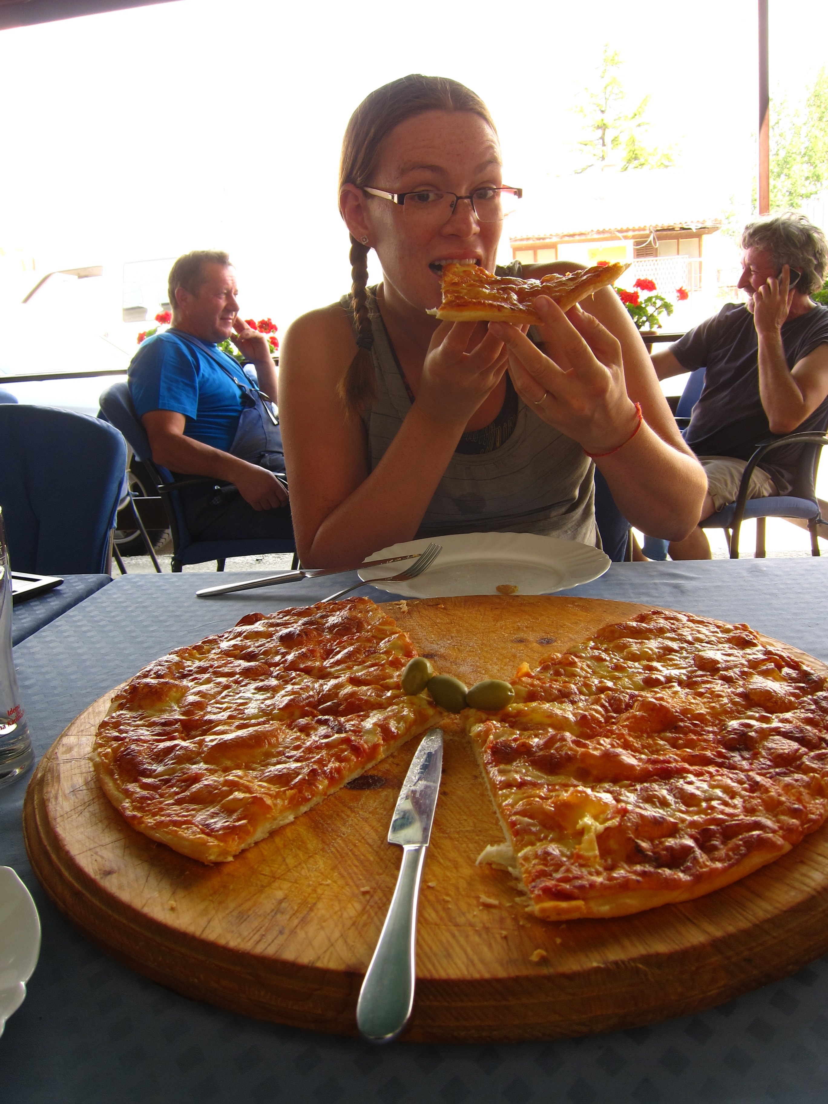 When we rolled into town, Chandler had the wonderful idea of getting some coffee and a big pizza for lunch. After not spending any money the day before, we could afford to splurge a little.