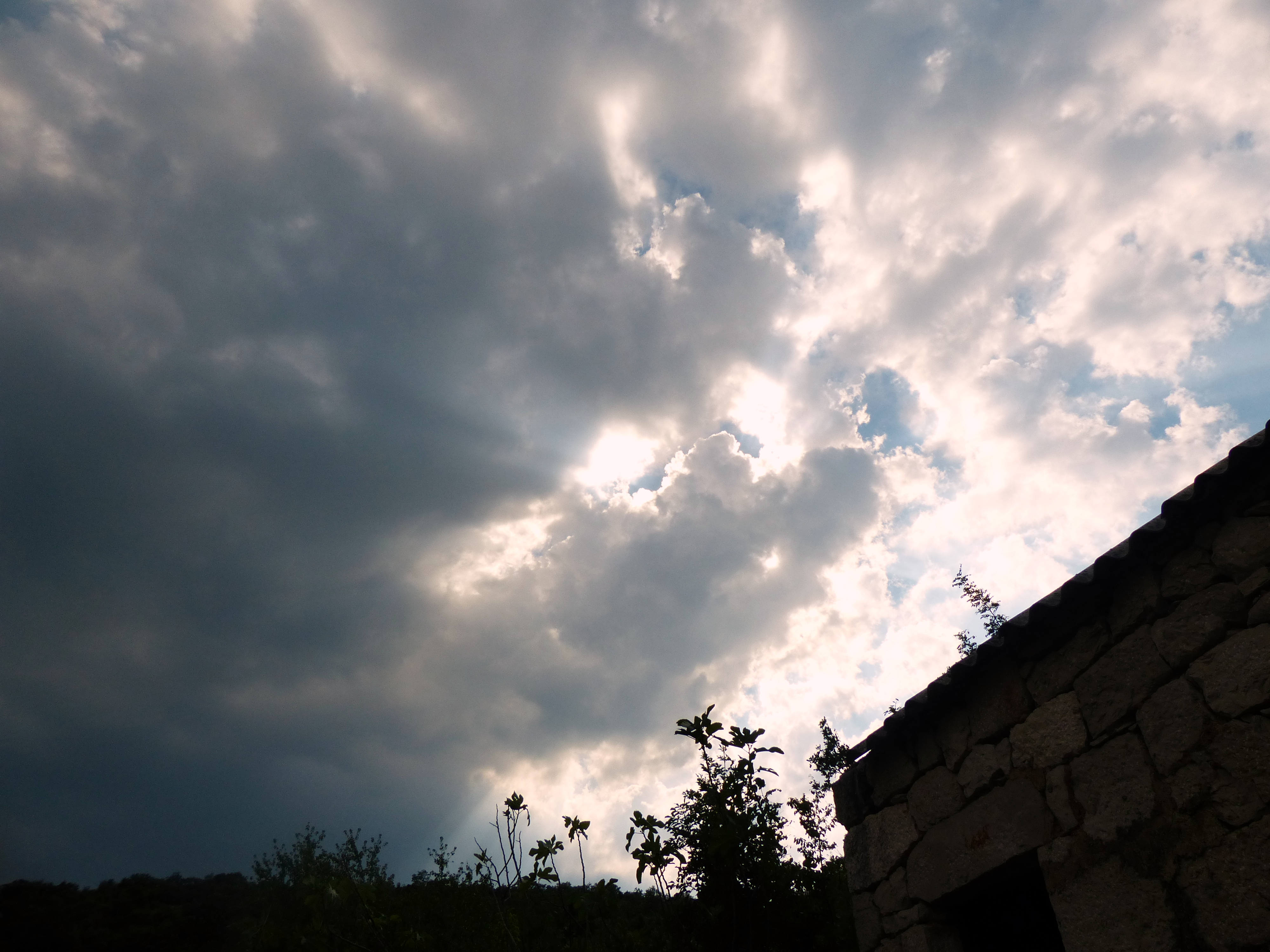 Eventually the lightening moved a little further away and the rain let up. We seized the chance to escape and continue along our way. We could still see the storm in the distance and realized that the road was heading in the direction of the storm that just passed us and another wave was approaching from behind us. Sooner or later, we would collide again. Luckily, when the rain and lightening started up again, we found a more solid roof to put over our head.