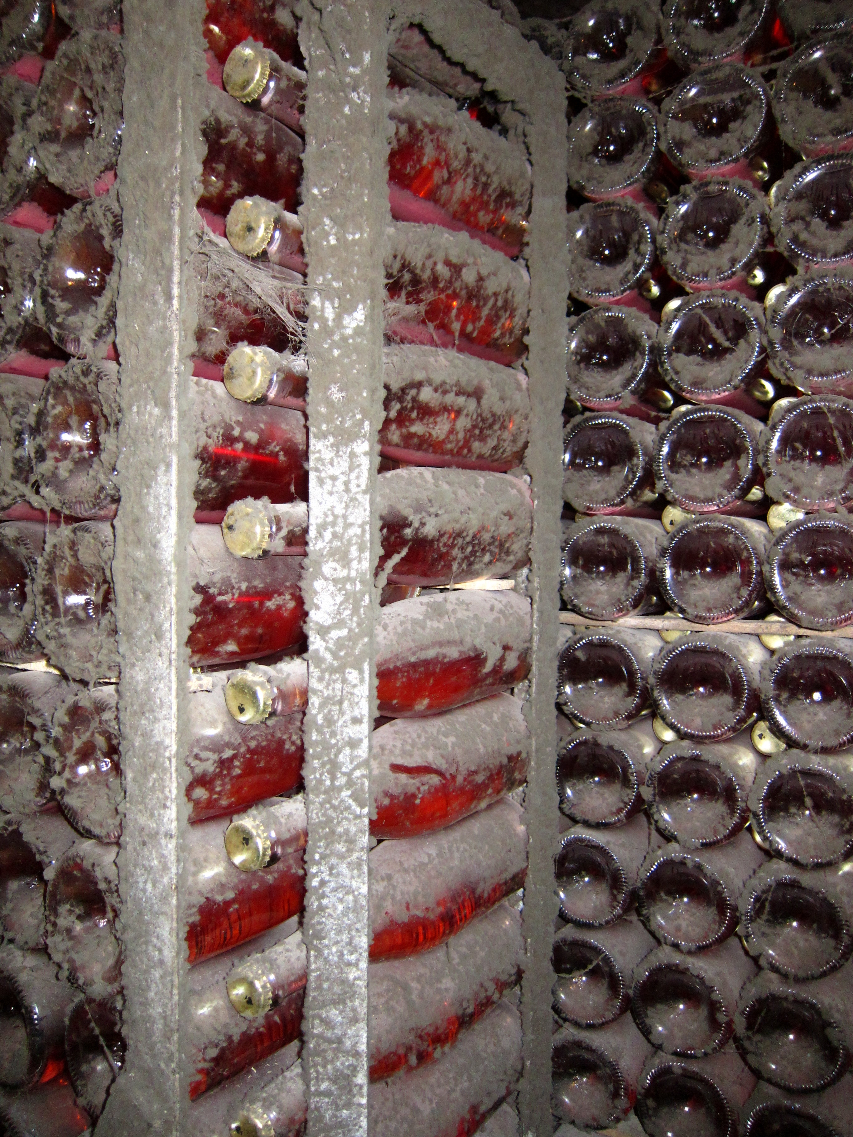 The consumer destined bottles go through a unique process called “riddling”. It used to be a laborious manual process where each bottle was slowly inverted and rotated over the course of around two weeks, so that all the solid residuals settle at the top of the bottle neck, against the cap. The process is now automated with big robots that carefully rotate huge crates of the bottles. Next, they flash-freeze just the neck of the bottle and remove the temporary metal bottle cap. The frozen plug of sediment is ejected by the carbonated pressure in the bottle. A cork is quickly inserted and the clear, sediment-free sparkling wine is ready to go!