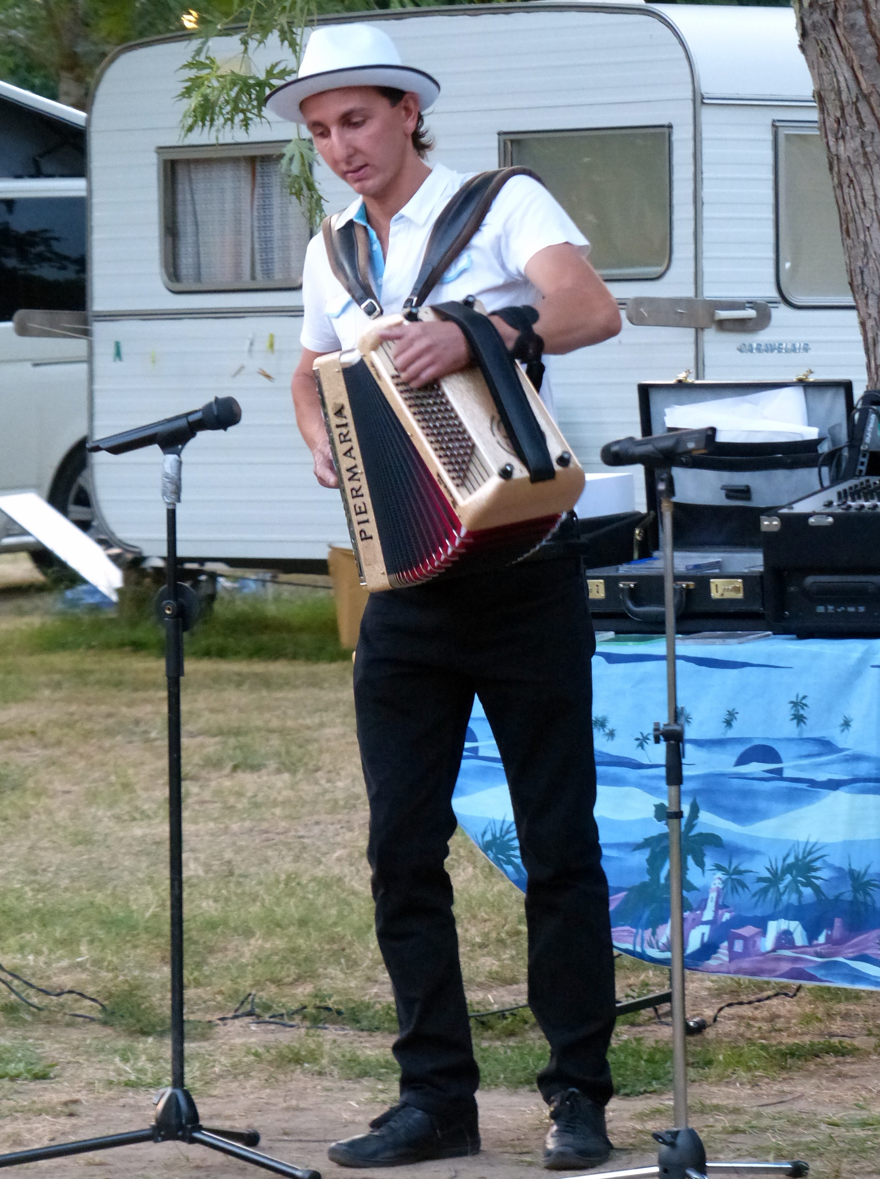 We reached Chinon in the early evening and found a campground in the center of town. As far as campgrounds go, French campgrounds are the best. There is generally area set aside for just bicycle tourists and our rate is much cheaper than the giant caravans. The campground in Chinon also featured a bit of evening entertainment, a musician.