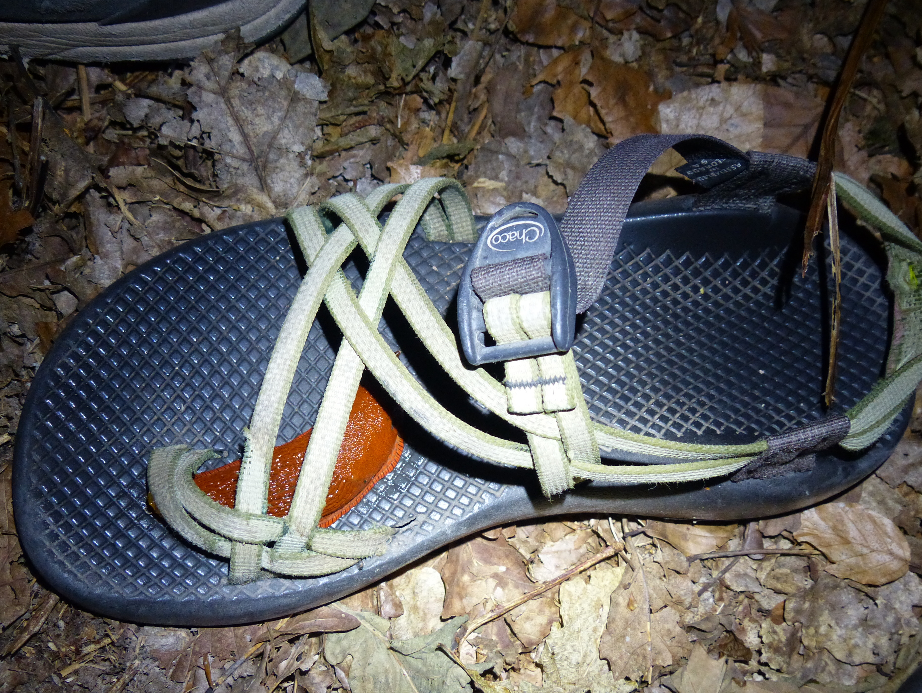 The GPS showed a bunch of dirt roads leading off into the woods and figured we would be able to find a place to camp. The first road took us to a lake with a gazebo and one million mosquitoes. Not wanting deal with the bugs, we moved on. The next road was bug-free and quiet. We found a nice clearing and set up camp. As usual, we shared a bottle of delicious French wine with dinner. I found out we had some uninvited guests later in the evening, giant slugs. Quite the surprise when I tried to put my sandal on for a nighttime bathroom trip.