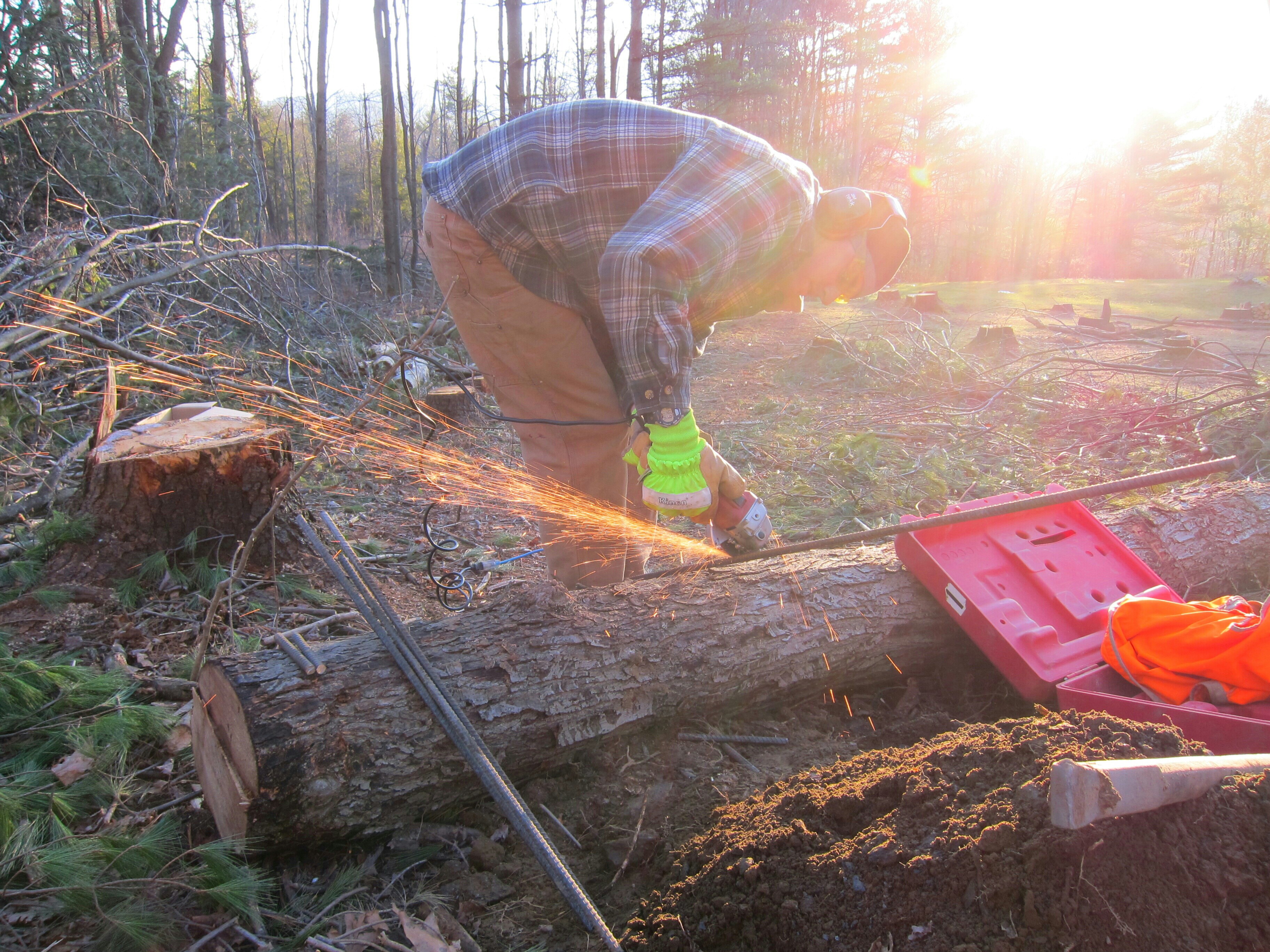 There are a few decent sized maples that were taken down in the vicinity of the cabin which we blocked up (until the chainsaw broke) and split to use for firewood. It isn’t the driest stuff in the world, but it keeps us warm.