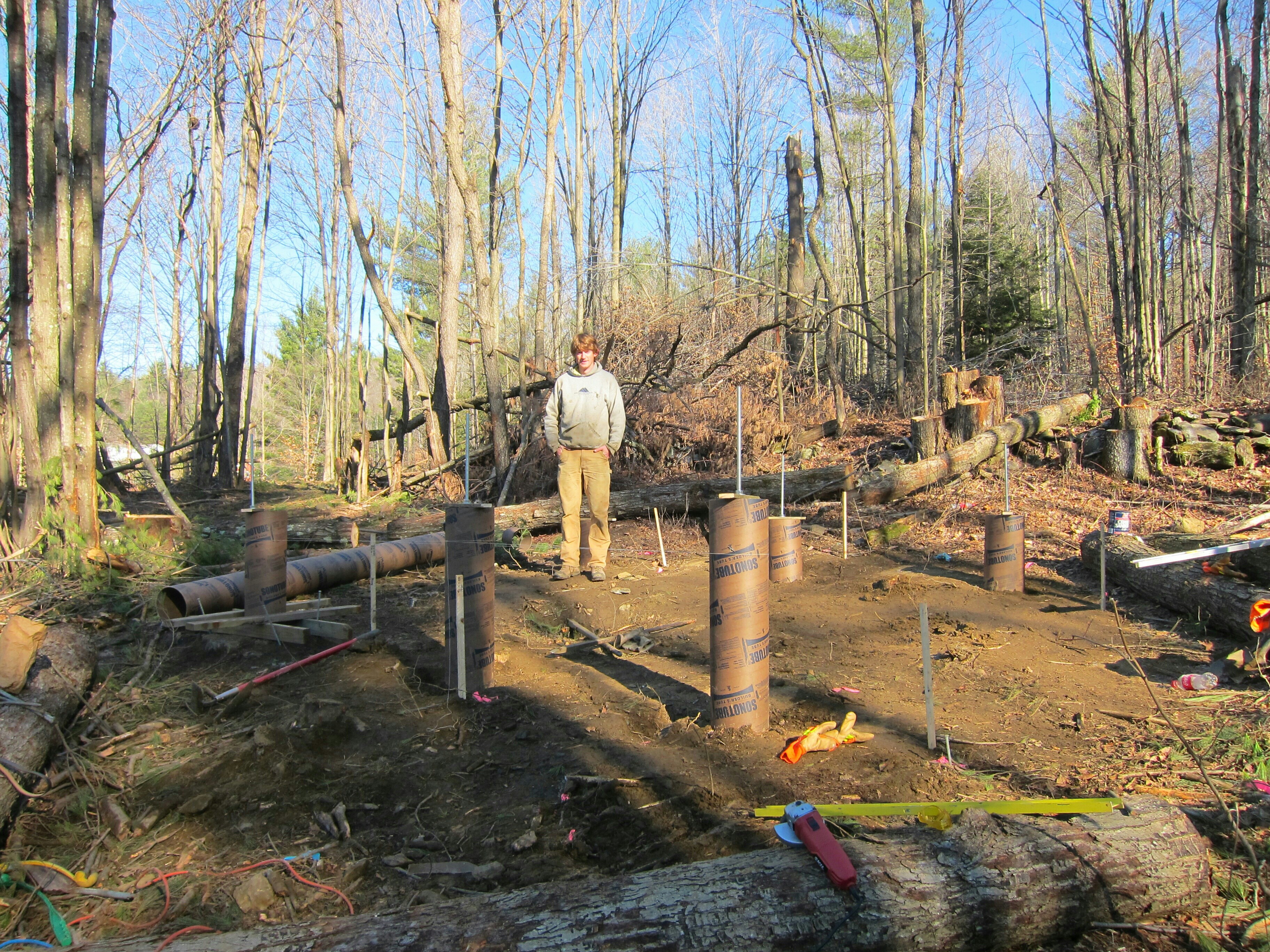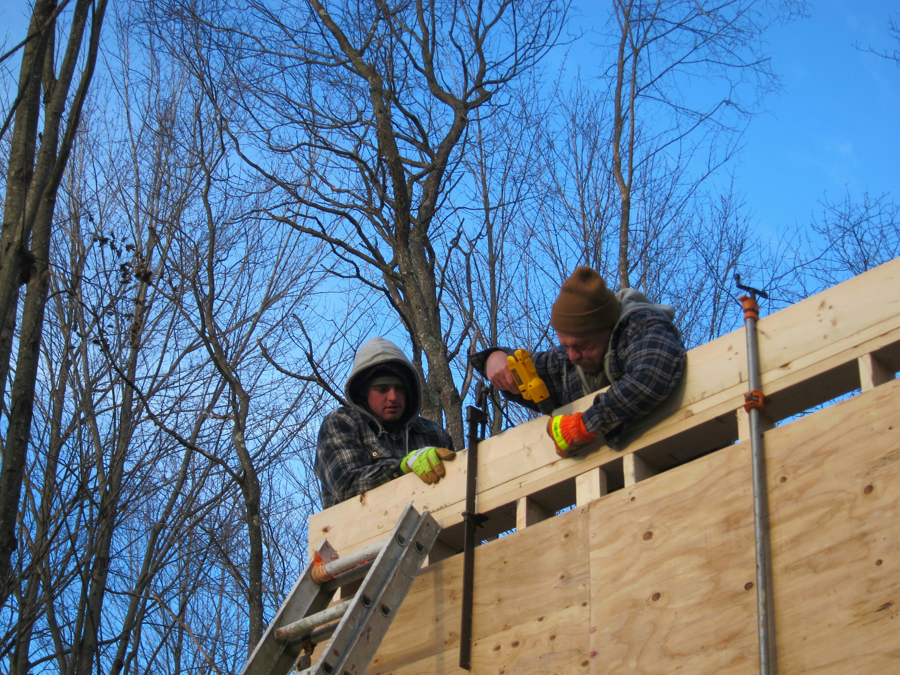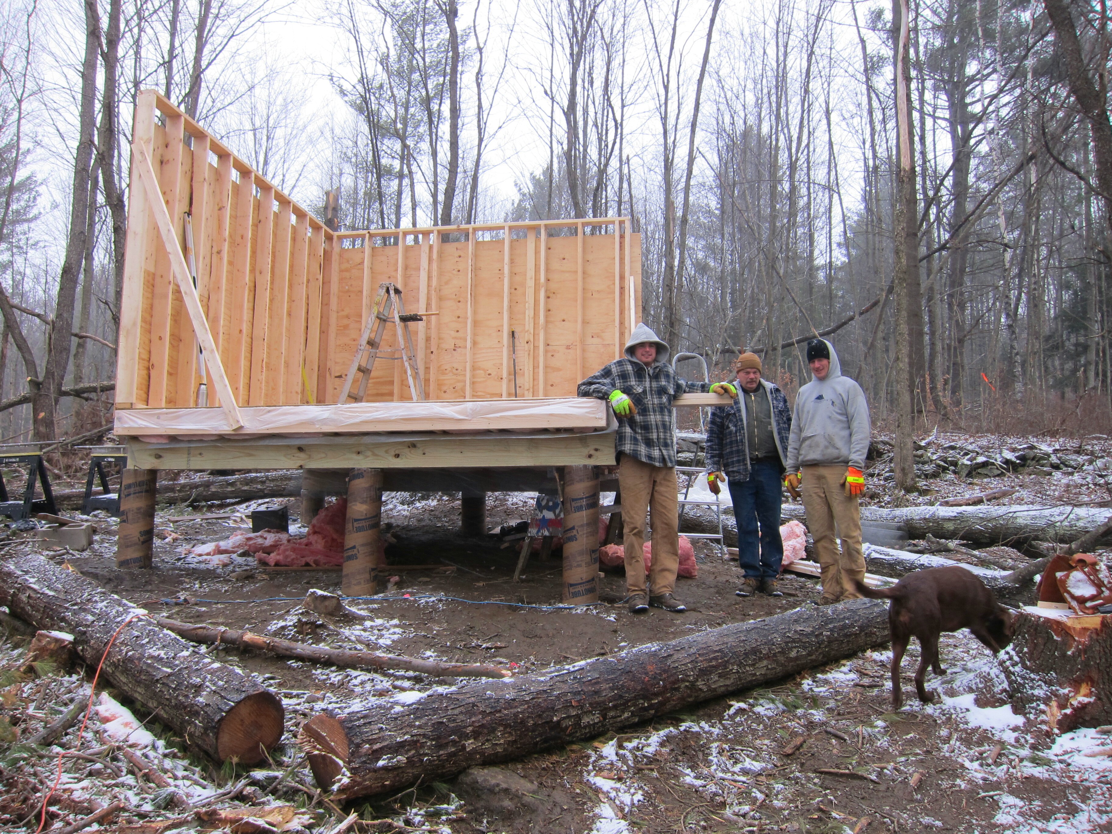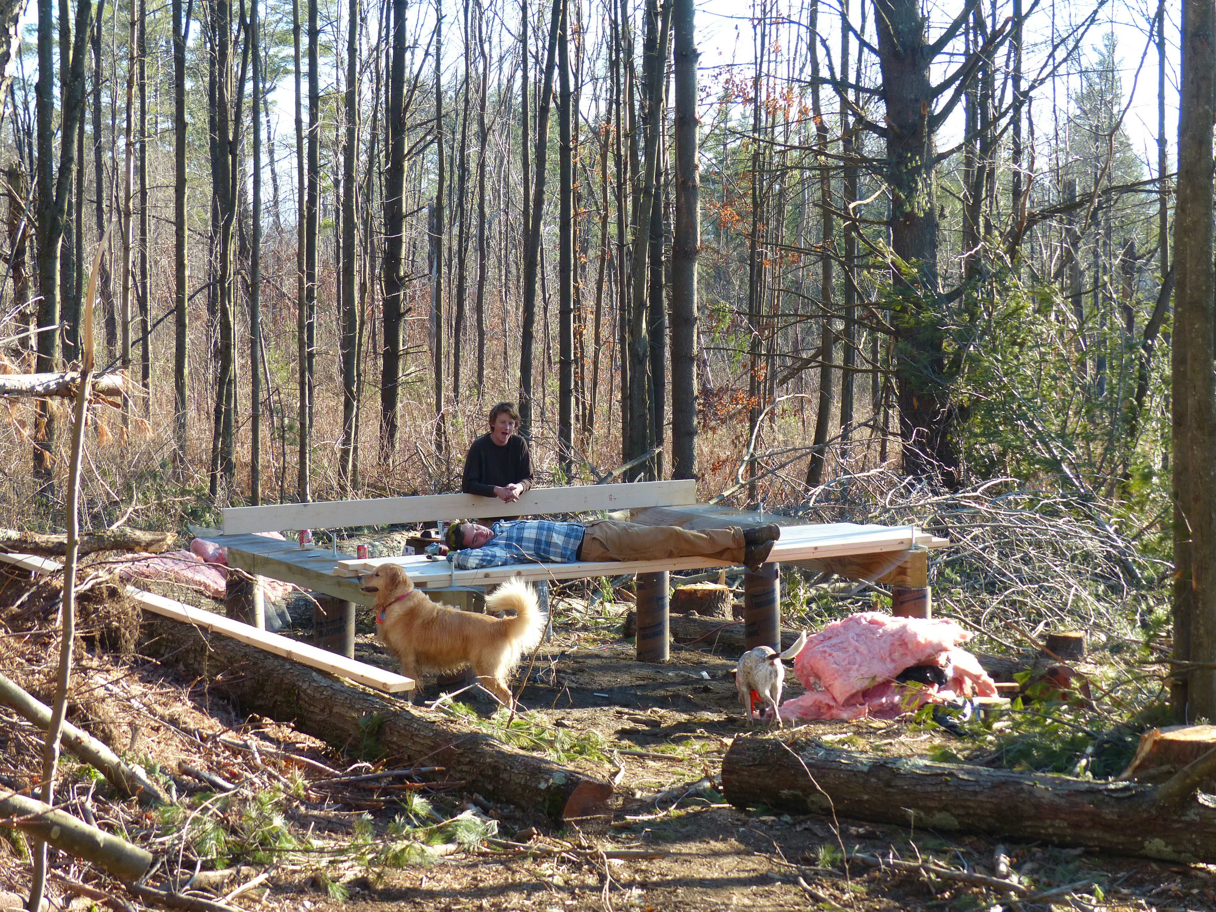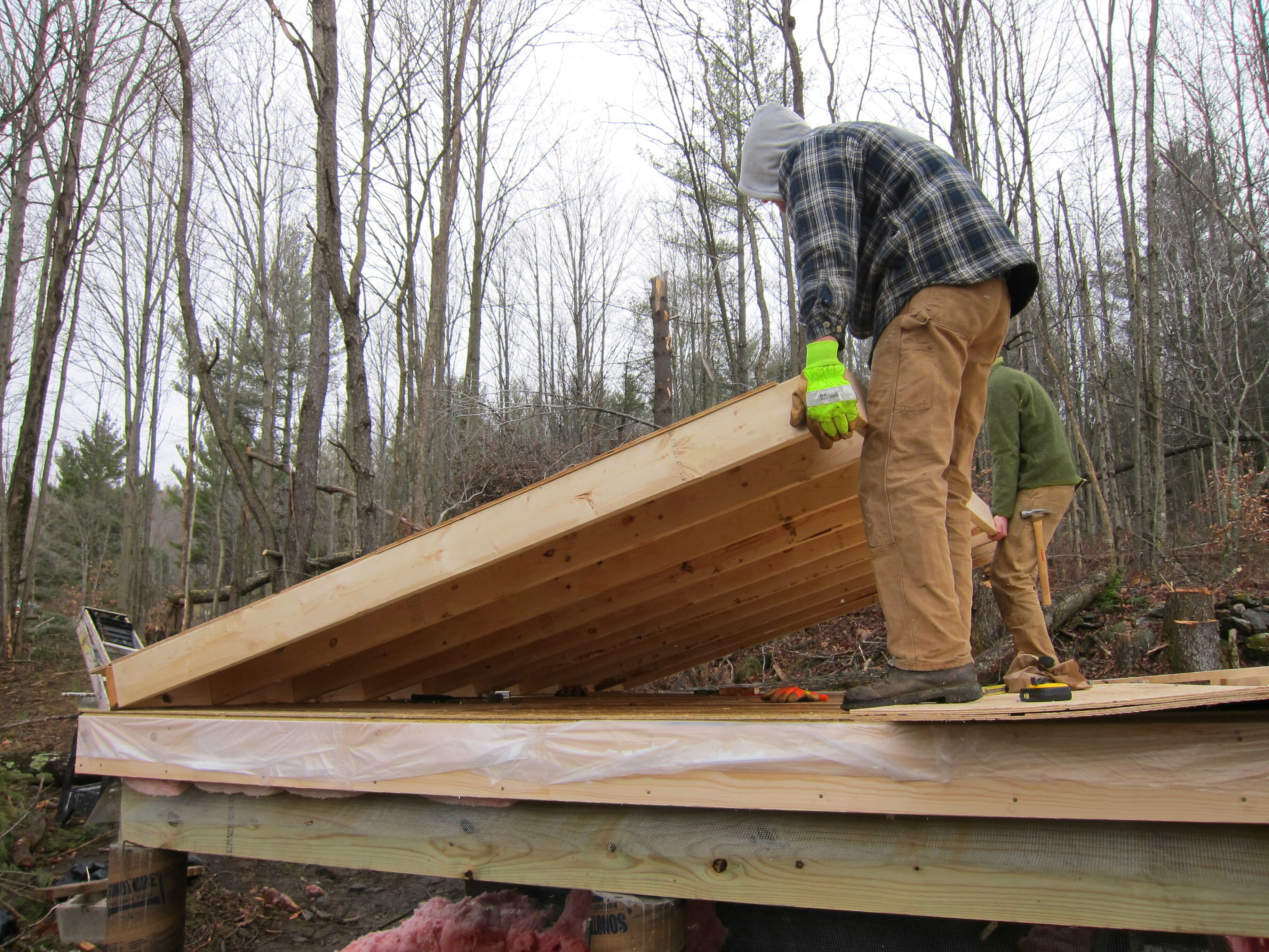 After the rush of getting the frame up and the roof on the cabin, the construction pace tapered off. The interior of the cabin didn’t seem as critical, so things progressed slowly. I worked on tacking up insulation while Chandler and Tayler focused on the stove. The difference in an insulated cabin and an uninsulated one is amazing. With each panel I tacked up, the inside temperature raised a degree. Soon enough, I was toasty warm.