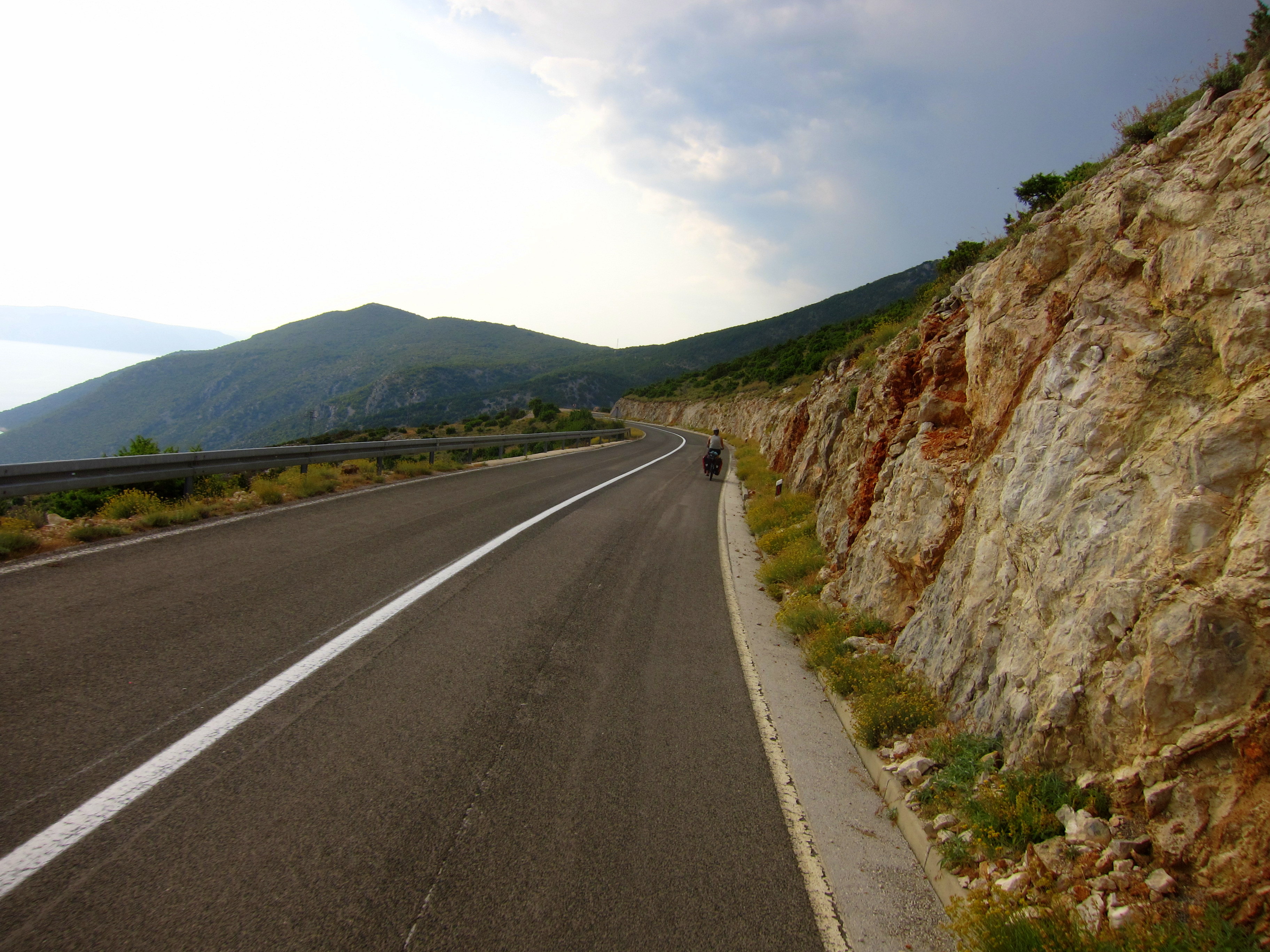 We had talked to another cycle tourists that had loved the coast to Rijeka, so we were looking forward to the ride. Large trucks were banned on that stretch of highway and the cars were only coming in waves with the arrival of the ferry. The highway followed the coast and was up high enough that we had fabulous views.