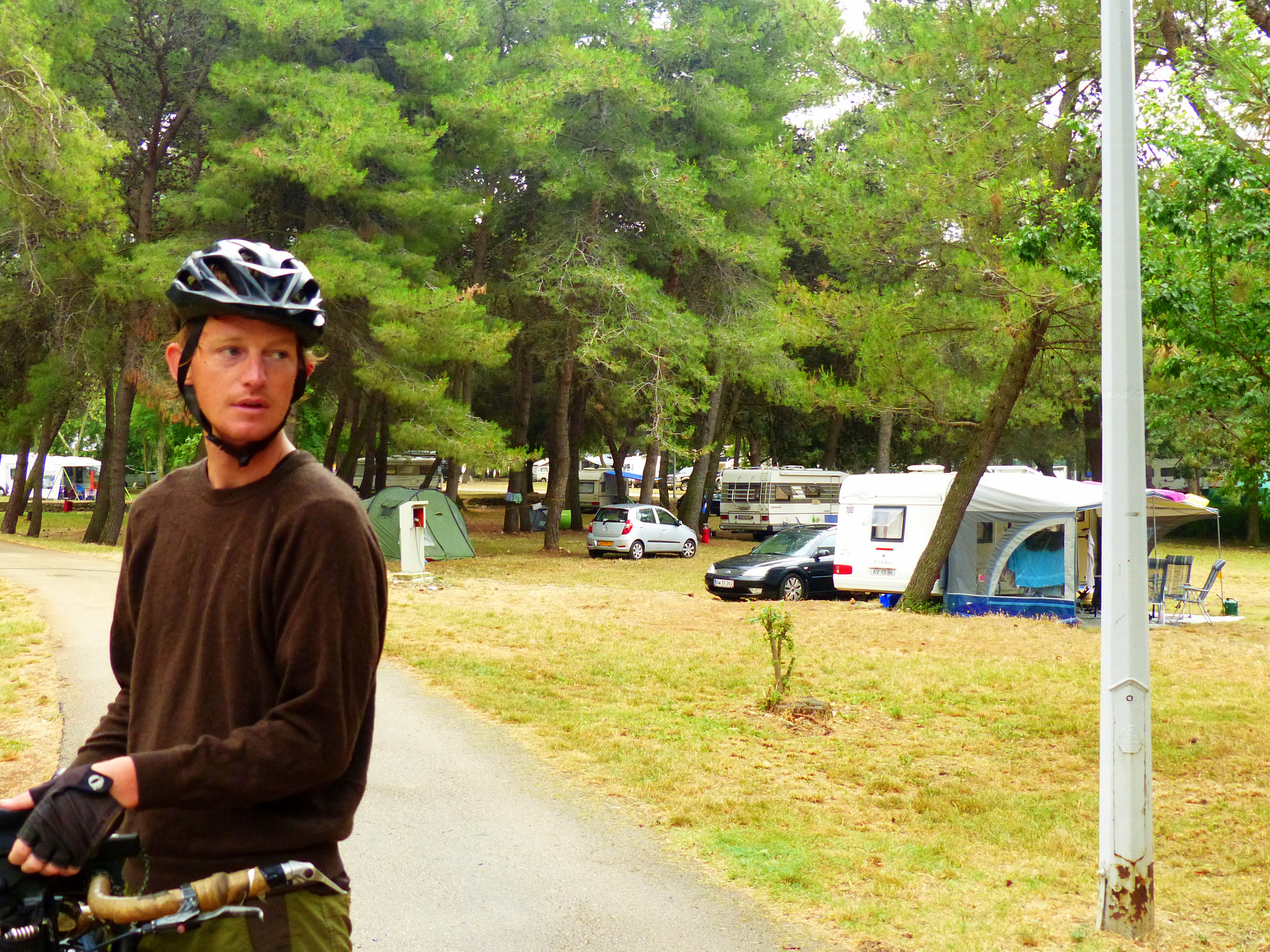 As usual, when faced with large volumes of traffic, our fun level plummeted. We hit rock bottom as we can into town. I almost got hit by the same car twice. People were not paying attention and being especially aggressive towards us. We tried riding on the sidewalks when they were available, but people used them to park their cars, blocking the way completely. We were totally over this crappy cycling and no longer wanted to be in Croatia or anywhere near it. We headed to the train station.