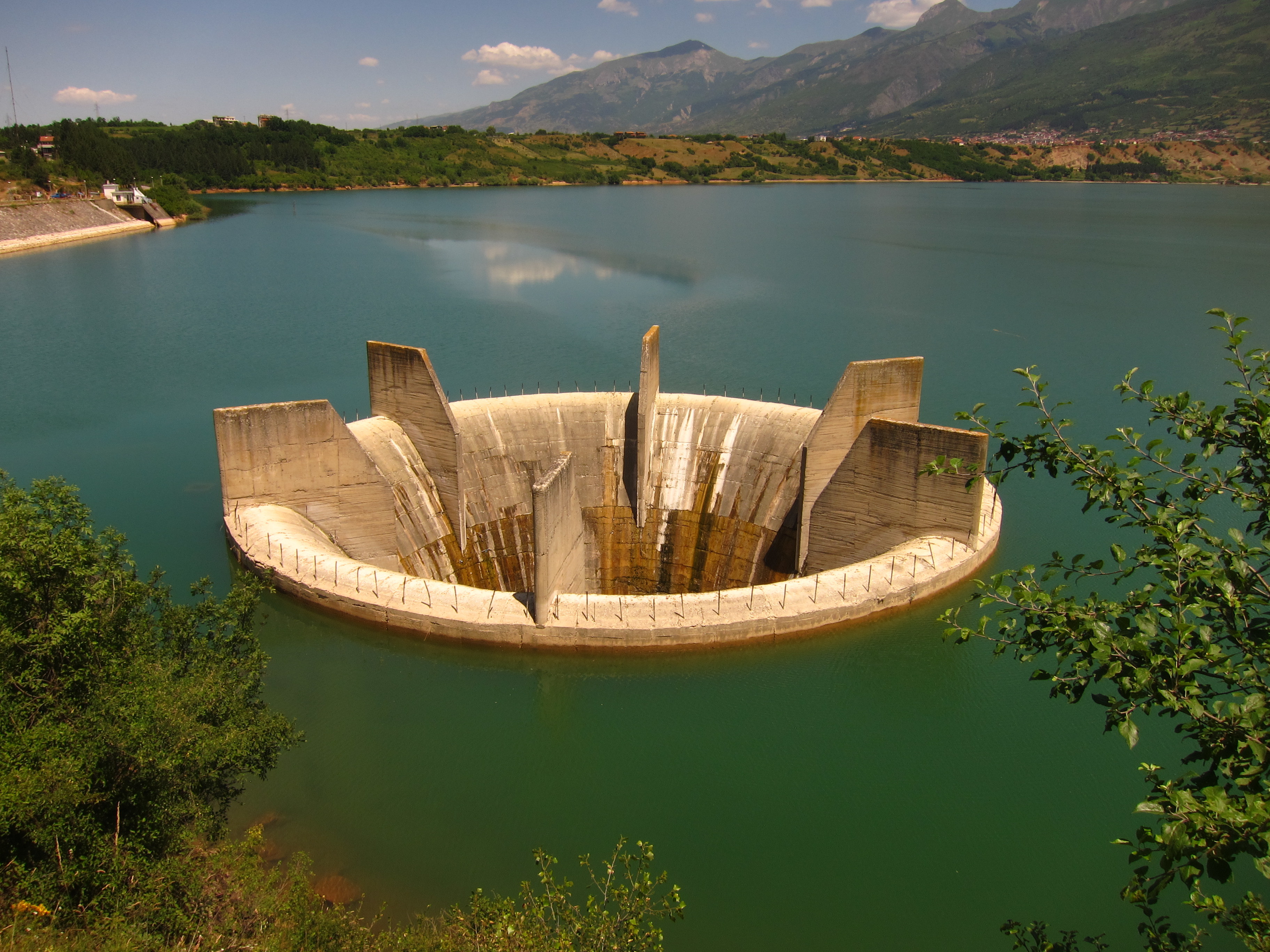 We continued along the reservoir which was quite beautiful, but the view was hidden by a number of large trees. We didn’t mind too much, considering we were getting some wonderful shade from the sun. Chandler was excited when we reached a nice dam, which he spent a while looking at. Past the dam, there was a small stream running alongside the road. Gradually, we started gaining elevation and above another reservoir, which led us to another dam. Two dams in one day, Chandler could hardly contain himself with glee. He was especially excited because they had huge “morning glory” spillways, where the excess water that doesn’t pass through the hydroelectric turbines dumps into a giant concrete drain out in the reservoir, then passes through the dam in a pipe before discharging downstream. According to him, they are not an especially common feature on big dams.
