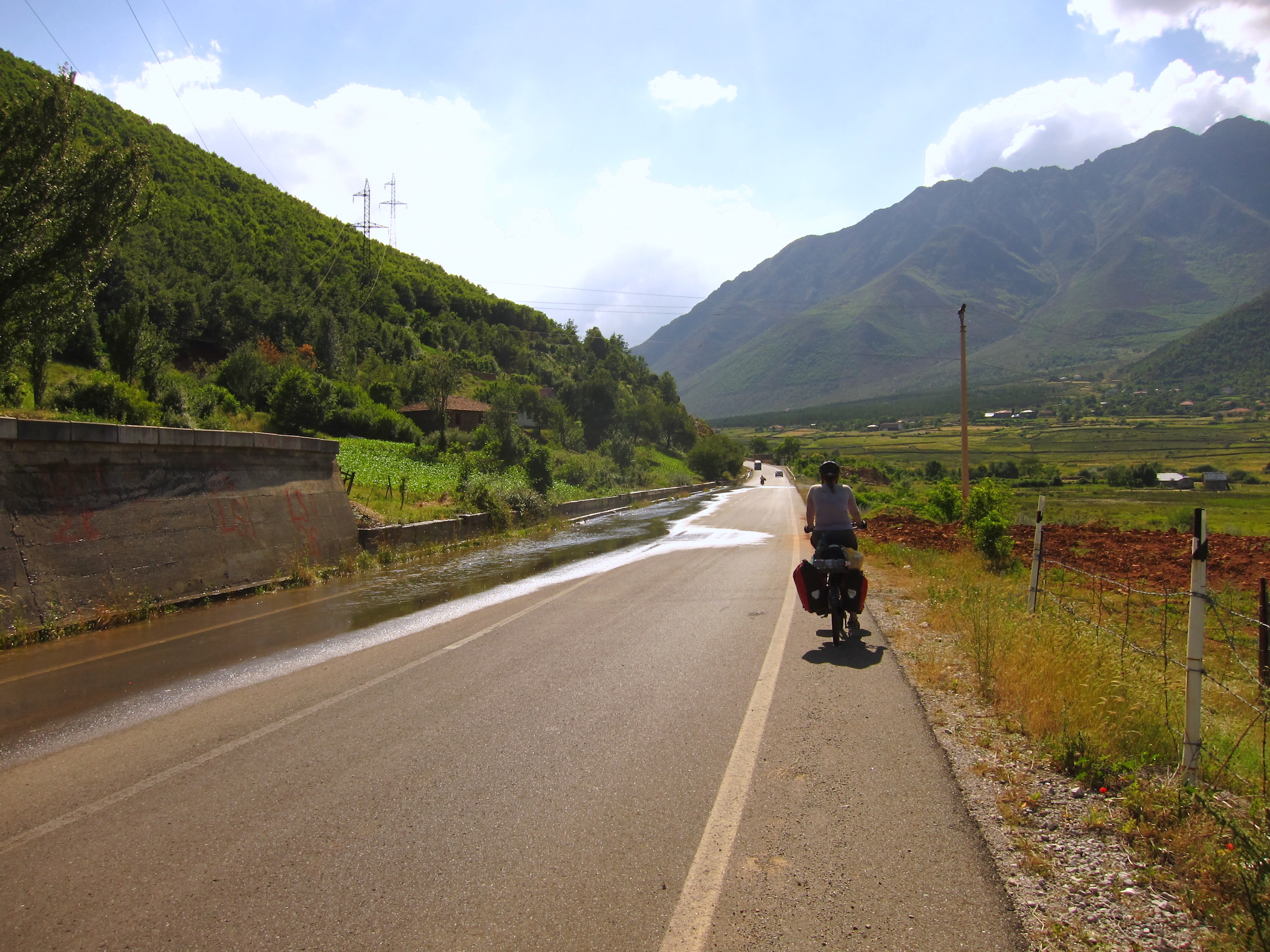 Chandler finished the brief phone conversation with the extremely confused man in England, we thanked our new friend and headed off. Neither of us could believe how happy we were to be back in Albania. The drivers were noticeably more courteous, the scenery more beautiful and the people more friendly. I felt like we were back in Cambodia with kids in trees shouting hello, people trying to give us high-fives as we biked pass and everyone honking to get our attention to wave. The most surprising thing is how friendly and encouraging the young men are towards us. We had several cars full of young dudes in Mercedes slow down to shout ‘ciao’, give thumbs up, clap or in my case, blow kisses.