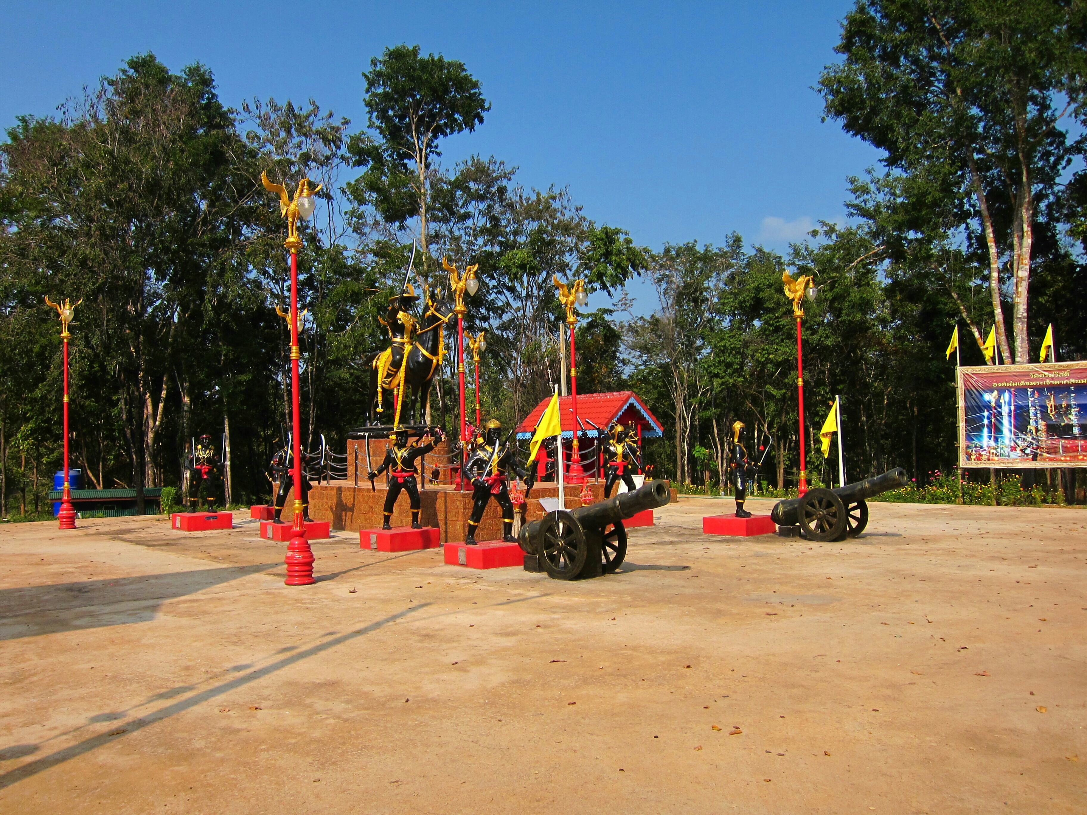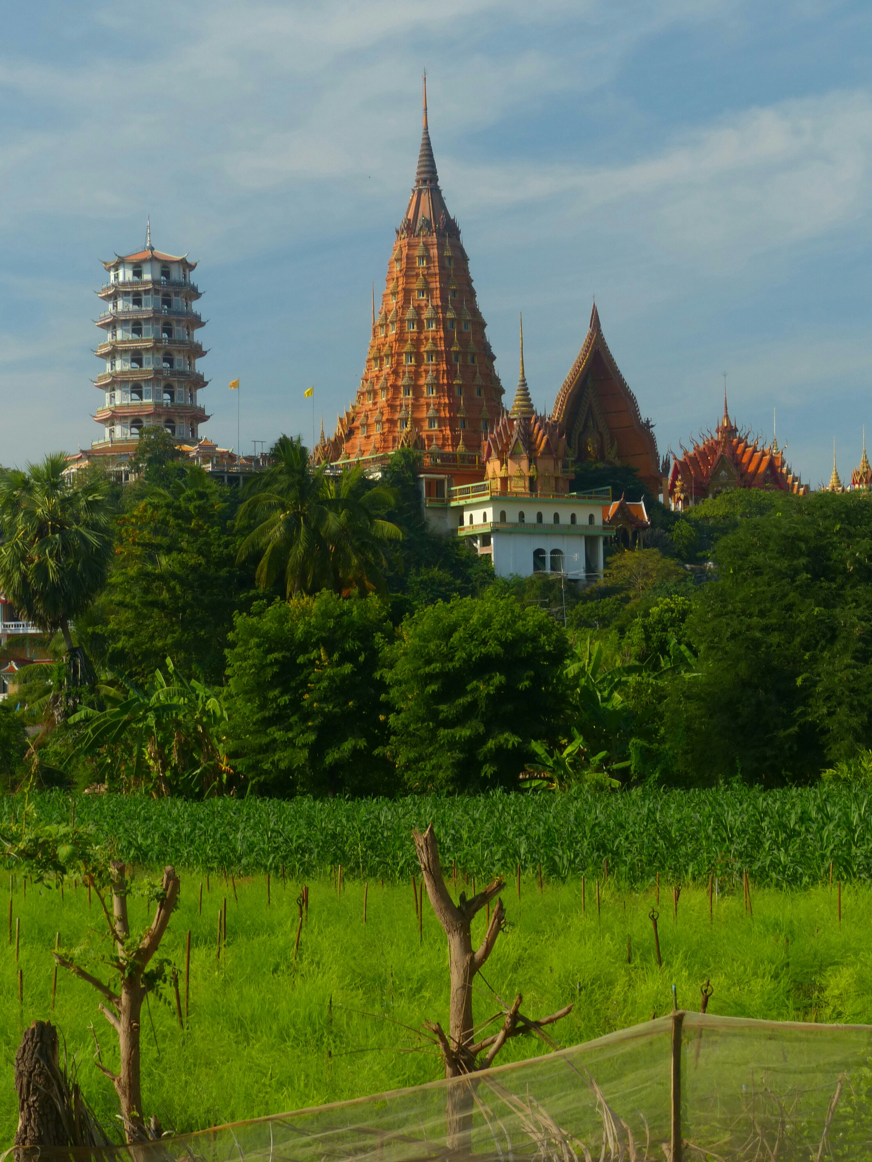 We left Ban Pong as the sun was rising and hustled to Kanchanburi. It was a nice flat ride and we covered the miles pretty quickly. We stopped along the way to look at another wat. This one was on top of a hill, so we had to climb a lot of stairs, but it was worth it. There was a large central building with lots of windows. It wasn’t clear who was in there, and we were too scared to explore in case it was some private area for the monks.