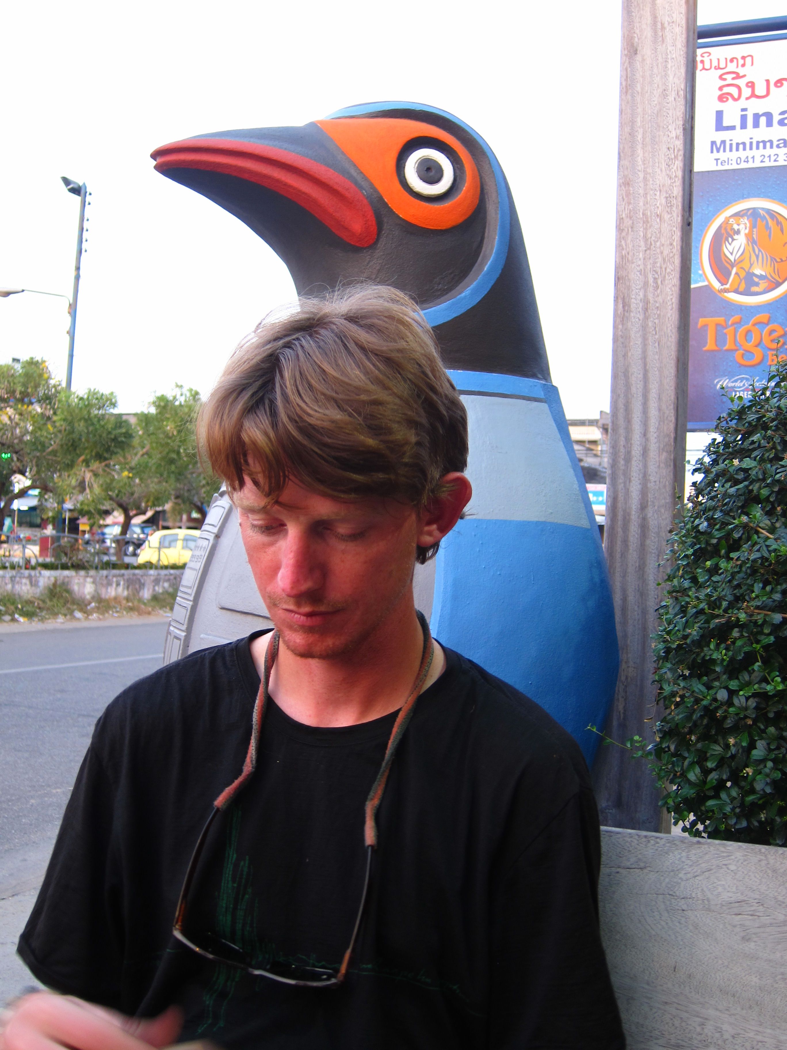 Chan put in a few hours filling out applications, booking hotels in China and getting all this stuff together, then printing it out to pdf. He found a local shop that then printed the documents out and made copies. This turned into a disaster as they somehow only printed about half of the pages out which he didn’t realize until he got back to the hotel and double checked everything against his list. He ended up having to go back to the shop two more times as their printer and copier kept losing pages of the application. Exhausted from his drawn out clerical duties of the day, Chan was starving. A French woman at our hotel recommended a restaurant that served pizza and had some interesting outside décor.