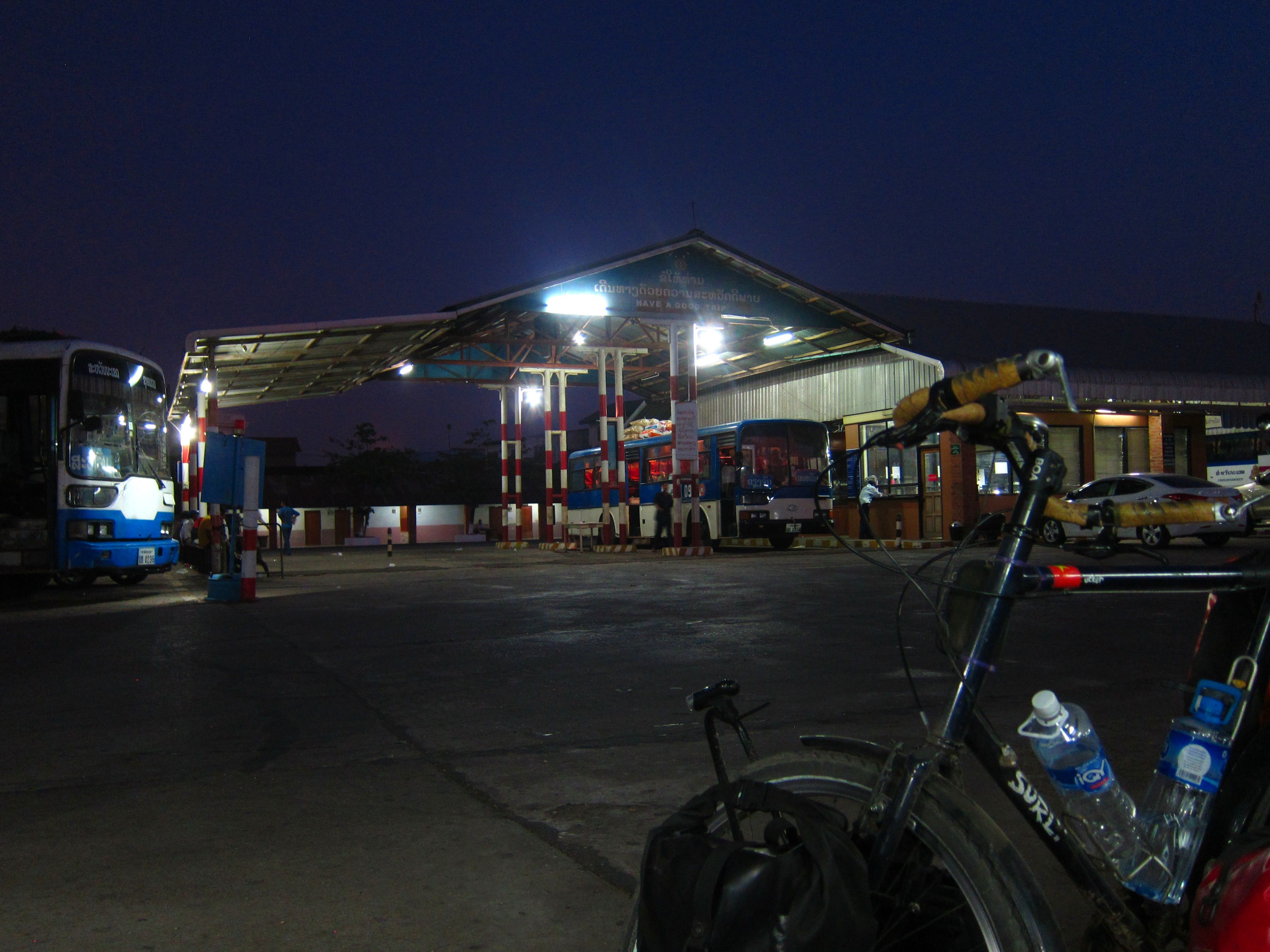 With nothing to do until our bus left, we biked around town until the sun started setting. At the bus station we had a couple of beers and Chandler had some soup while we waited. When the lights on our bus turned on we headed over to make sure our bikes got on first.